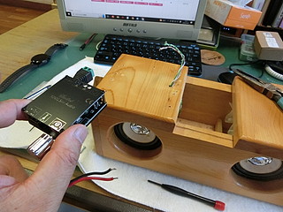 それでも、ちょっと音量不足であることが気になっていた。今回、安いデジタルアンプを見つけたのでアンプ部分を換装することにした。
