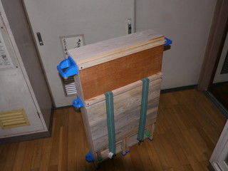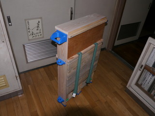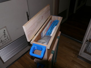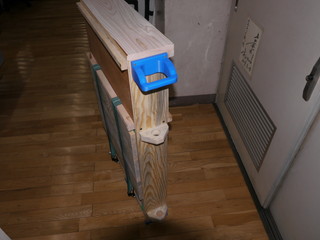 さらに校長不在時に事務の先生と教頭先生など、女性でも運べるように左右に持ち手を取り付けた。秋にも避難訓練があるので、使いながらよりよい物にしていきたい。