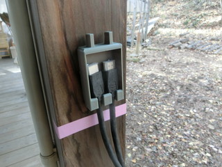 森の教室には2つのプロジェクターを設置しているのですが、外にあるのでケーブルも腐食が気になります。 3Dプリンタでコネクタ部分を収めるホルダを作りました。 コネクタにはキャップを付けてあるので、外したキャップは上部に仮置きできる設計。
