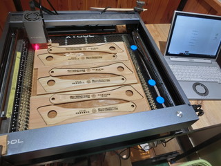 学校では博報賞を受賞して副賞のお金が入ったので、新しいレーザ加工機を購入しました。xtool D1pro 20wのLEDレーザなので、9mmの木材を切断することができます。 受賞記念として、春に危険木として伐採した玄関前のサワラの木を利用して、木べらを作りました。 解像度も高いので、切断だけでなく文字入れもきれいにできます。