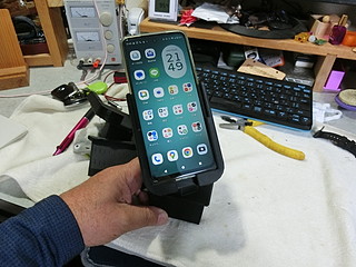 黒いフィラメントが無かったこともあり、暫定的に試作したもの。一応保持はできるが画面が見にくいのと充電に難があった。