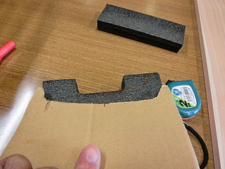 さすがにLEXUSに穴を開けてネジ止めというのは躊躇されるので、あたる部分はスポンジにして差込で作る。