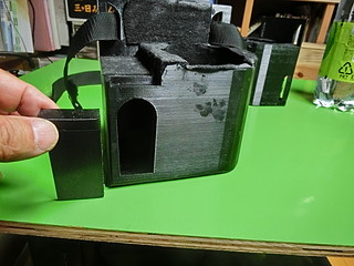 試作で前側の壁は邪魔で切り取ってしまったので、もう一度製作。今度は予備バッテリーを入れるためのスペースを作り、蓋も作った。