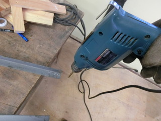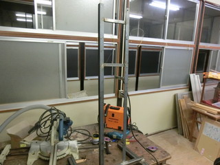 今回テレビをご寄付頂いたので、ストックしてあった鉄骨でスタンドを溶接する。