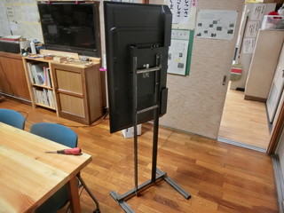 多目的ホール入り口にメッセージボードを設置するためTV台を製作した。